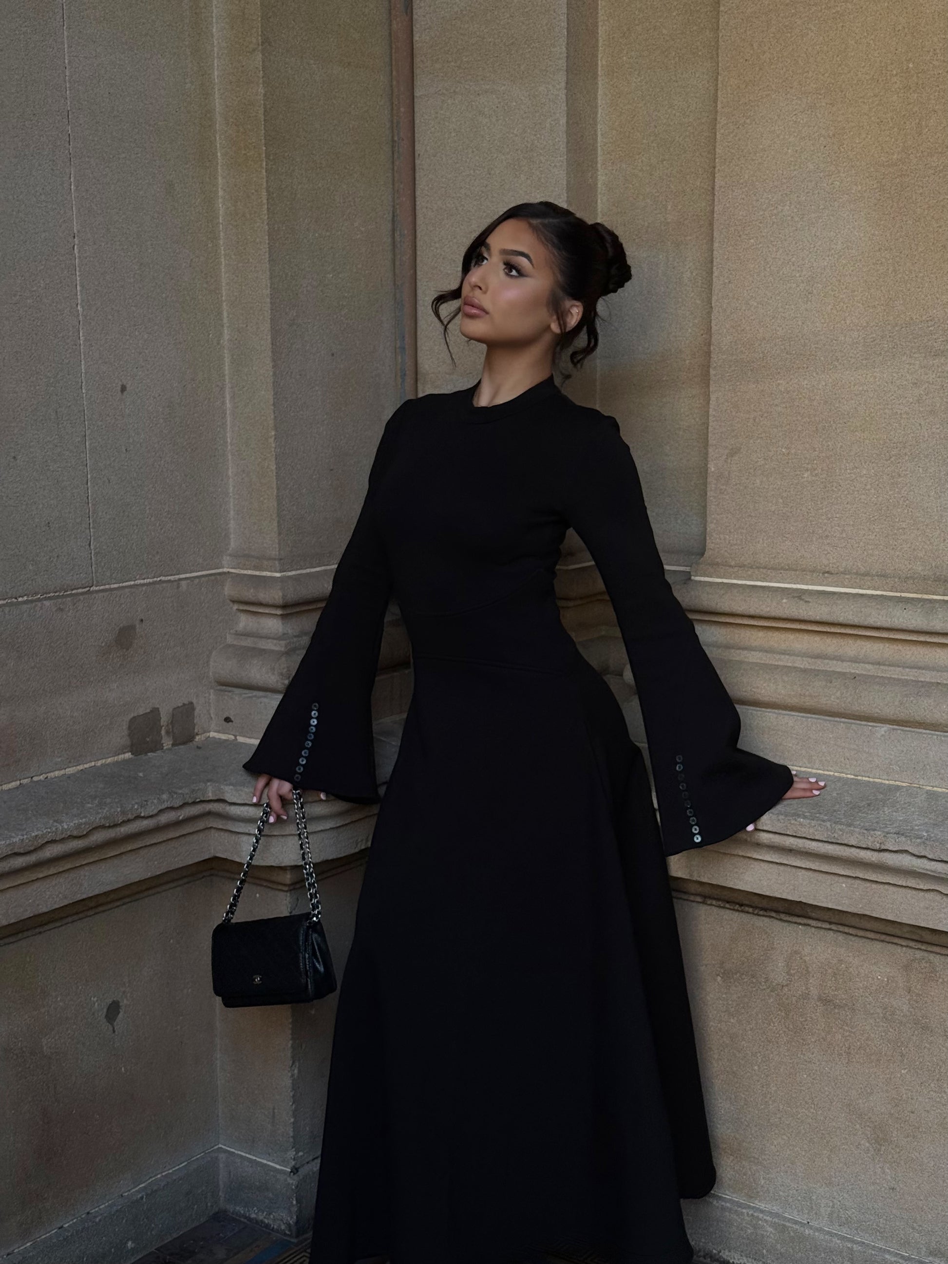 Introducing LUNA NOIR – Long Sleeve Flared Maxi Dress